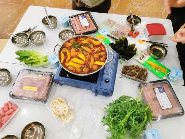 廳內(nèi)早已人頭攢動,一桌桌員工圍坐在一起。牛丸、蛋餃、火腿腸、羊肉、茼蒿、藕片等食材在鍋里翻滾,“咕嘟咕嘟”地唱著歌曲,升騰的熱氣中映出一張張笑臉,大家邊吃邊聊,熱熱鬧鬧的開門紅火鍋溫暖著每一個(gè)人。