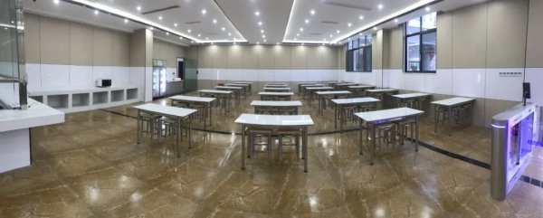 剛站在食堂門口,一陣陣濃香的火鍋味飄來,歡聲笑語四處回響,讓人想趕緊參與其中。在進(jìn)門的閘機(jī)通道對準(zhǔn)刷臉門禁系統(tǒng),隨著“識別成功”語音響起,筆者就進(jìn)入到了食堂大廳。