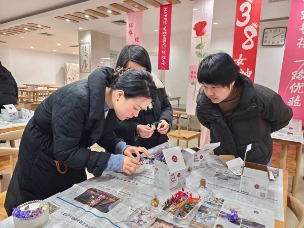 3月6日下午,在臺(tái)州市分公司組織開展“‘香’遇最美時(shí)光”手工香薰蠟燭DIY活動(dòng),共有85位職工參加。活動(dòng)現(xiàn)場,各位女職工紛紛發(fā)揮創(chuàng)意,自主構(gòu)思,用心感受香薰蠟燭的魅力和與之帶來的生活之美,從化蠟、調(diào)香、冷卻,再加入各種永生花作為點(diǎn)綴,每一處細(xì)節(jié)都彰顯出了細(xì)膩和個(gè)性。整個(gè)過程香氣四溢,充滿著溫馨和浪漫。每位職工手里的作品都精彩紛呈,大家紛紛拿起自己親手精心制作的香薰蠟燭合影留念。同時(shí),臺(tái)州市郵政工會(huì)還組織女職工觀影活動(dòng),讓大家放松心情、陶冶情操,一起度過充實(shí)愉快、富有意義的節(jié)日。