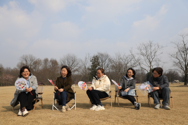 下午女神們圍坐在天幕下,一起手工制作團(tuán)扇。團(tuán)扇有“團(tuán)圓、友善、吉祥如意”的美好寓意。心靈手巧的女神們充分發(fā)揮自己的想象力和創(chuàng)意,有條不紊的進(jìn)行創(chuàng)作,大家時(shí)不時(shí)互相交流,現(xiàn)場(chǎng)氣氛十分活躍。