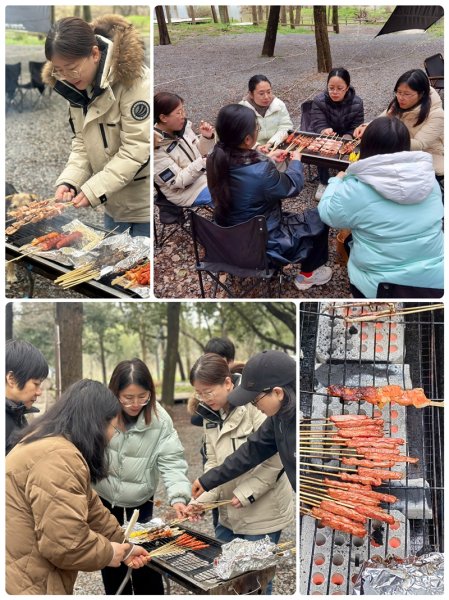 午餐時(shí)分,大家來(lái)到綠樹(shù)成蔭的燒烤區(qū),開(kāi)始了自助燒烤活動(dòng)。大家分工合作:有人負(fù)責(zé)烤串,有人負(fù)責(zé)調(diào)味,還有人忙著幫大伙兒準(zhǔn)備餐具和飲料……不多時(shí),香氣四溢的烤串兒陸續(xù)出爐,饞得人直流口水。揀一把自己喜歡的串兒,圍爐閑敘,好不悠閑。都道“人間煙火氣,最撫凡人心”,碳火繚繞輕煙,烘烤著一串串的烤串,也溫暖著爐火邊圍坐的大家,驅(qū)散早春的料峭寒意。