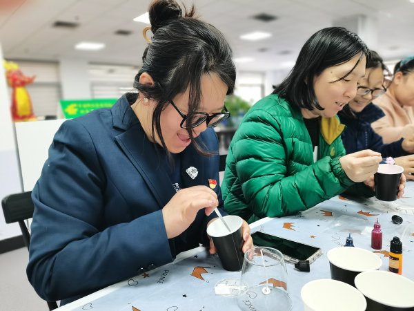 春花競顏,大地更新,為更好地展現(xiàn)女職工的新風(fēng)采,讓女職工放松心情、陶冶情操,度過幸福而有意義的節(jié)日,在三八國際勞動婦女節(jié)來臨之際,海淀區(qū)分公司開展了“相約三八 擁抱春天”系列活動。3月5日海淀區(qū)分公司開展了“點亮幸?!钞嬒戕瓜灎T制作活動”,全區(qū)來自各崗位近40名女職工參加了本次活動。