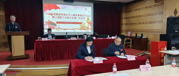 會(huì)上行政方、工會(huì)方共同簽訂了《中國(guó)郵政集團(tuán)有限公司上海市黃浦區(qū)分公司工資專項(xiàng)集體合同》。
