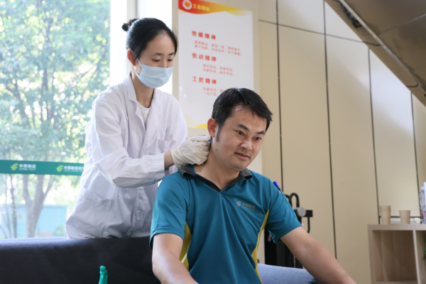活動(dòng)現(xiàn)場,具有豐富臨床經(jīng)驗(yàn)和精湛醫(yī)術(shù)的醫(yī)護(hù)人員仔細(xì)查看每位勞動(dòng)者的身體健康狀況,詳細(xì)詢問過往病史,耐心解答各類健康咨詢問題,解讀體檢報(bào)告和既往病歷,逐一提供測(cè)量血壓血糖、中醫(yī)四診、中醫(yī)理療、健康問診等等全面服務(wù)。同時(shí),結(jié)合職業(yè)特性、年齡階段特點(diǎn)及常見疾病等,講解預(yù)防和保健常識(shí),針對(duì)頸肩腰腿關(guān)節(jié)、失眠、“三高”等常見慢性病的防治,提出了專業(yè)的診療建議和科學(xué)的飲食、運(yùn)動(dòng)、用藥指導(dǎo),鼓勵(lì)基層勞動(dòng)者們培養(yǎng)健康的生活方式,以免費(fèi)“零距離”的公益醫(yī)療服務(wù),傳遞了關(guān)愛與溫暖?!捌綍r(shí)工作比較忙,我有些腰酸背痛的老毛病,也沒太多機(jī)會(huì)到醫(yī)院求醫(yī)問診,這次活動(dòng)把健康服務(wù)送到離我們最近的郵政網(wǎng)點(diǎn),特別的貼心?!必?fù)責(zé)水果湖步行街附近保潔衛(wèi)生的“城市美容師”——48歲的女環(huán)衛(wèi)工人陳文進(jìn)現(xiàn)場體驗(yàn)了“艾灸”療法后,為此次活動(dòng)“點(diǎn)贊”。