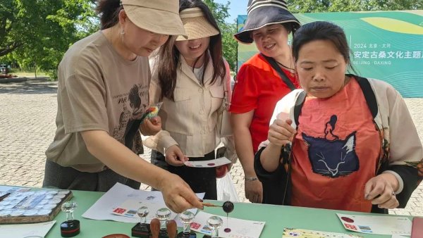 郵政展臺(tái)前,游客們通過(guò)動(dòng)手制作明信片,聽(tīng)郵政員工介紹御林古桑園歷史,對(duì)大興區(qū)獨(dú)有的歷史文化有了更加深刻的了解。特別是在“從古桑園寄出的祝?!边@一體驗(yàn)項(xiàng)目,得到游客們的喜愛(ài),大家紛紛坐下,將美好祝福書(shū)寫(xiě)在明信片上,加蓋寓意吉祥的文化紀(jì)念戳,寄給遠(yuǎn)方的親人朋友。