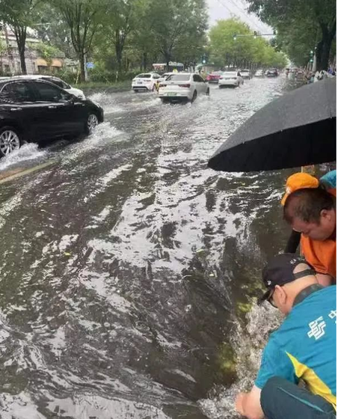 8月16日中午12點30分左右,北京市區(qū)突遭區(qū)域性暴雨襲擊,交道口街道張自忠路路段迅速出現(xiàn)大面積積水,車輛和市民的通行安全受到嚴重威脅。在這緊急關(guān)頭,西城區(qū)張自忠路營業(yè)部經(jīng)理王洪生帶領(lǐng)班組成員郭新、郭曉東、潘飛飛挺身而出。