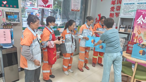 9月14日下午,福清音西郵政支局、宏路郵政支局郵愛驛站里環(huán)衛(wèi)工人、外賣小哥、快遞小哥等戶外勞動者歡聚一堂,品嘗月餅,共話中秋、笑語不斷。郵政工作人員為他們宣傳防金融詐騙常識、健康生活知識等,也為大家送上節(jié)日的慰問,環(huán)衛(wèi)工人李大姐接過慰問品,激動地說:“真的很感謝大家對我們的關心,這份禮物讓我們心里暖暖的。雖然工作很辛苦,但有了大家的支持,我們會更加努力地工作。”