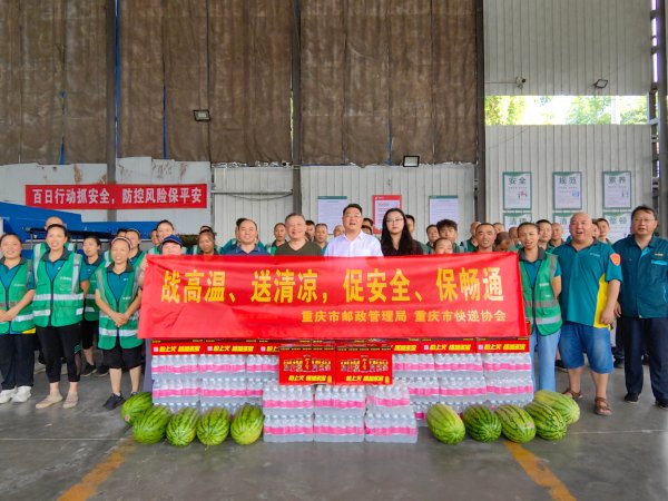 重慶近期超40度高溫天氣持續(xù)不斷,9月5日,重慶市快遞協(xié)會秘書長鄧堅一行到涪陵郵政開展“戰(zhàn)高溫,送清涼,促安全、保通暢”慰問活動,重慶市郵政管理局三分局相關(guān)部門人員參加。