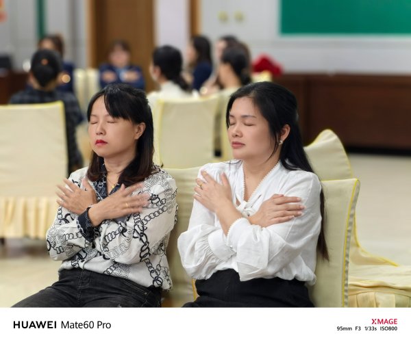 在“冥想”環(huán)節(jié),員工們紛紛調(diào)整坐姿,放松身體,輕輕閉上雙眼,跟隨老師的引導(dǎo),緩緩地將注意力聚焦在自己的呼吸上。在冥想過(guò)程中,有的員工感受到了內(nèi)心深處那份久違的平靜,平日里緊繃的神經(jīng)逐漸松弛下來(lái);有的員工則在專注呼吸的同時(shí),腦海中浮現(xiàn)出一些美好的畫面,如大自然的美景、與家人溫馨的時(shí)刻,讓他們從心底涌起一股溫暖與幸福感。