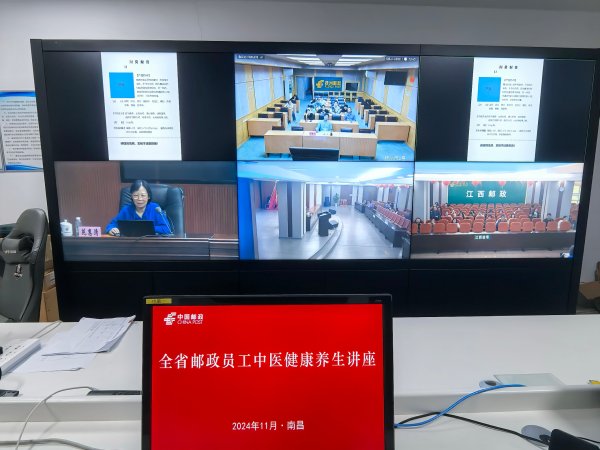 為貫徹落實省分公司2024年工作會議暨三屆九次職工代表大會精神,按照《關(guān)于開展2024年中國郵政“溫暖服務(wù)季”江西區(qū)域活動的通知》(贛郵工會〔2024〕17號)的安排,11月13日下午,江西省郵政工會決定舉辦全省郵政員工中醫(yī)健康養(yǎng)生講座,旨在向全省郵政廣大職工普及中醫(yī)養(yǎng)生健康知識和職業(yè)病防治方法。本次講座以電視電話會形式開到市、縣分公司。全省郵政近千名職工在主會場和分會場聆聽了講座。