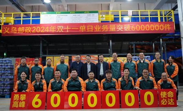 截至11月11日22:38,義烏市分公司單日業(yè)務(wù)量首次突破600萬(wàn)件,實(shí)現(xiàn)了高起點(diǎn)上的新跨越。浙江省省分公司副總經(jīng)理李崇喜攜省郵政工會(huì)副主席尤慶華專程到義烏四海處理中心現(xiàn)場(chǎng)祝賀,并看望慰問(wèn)奮戰(zhàn)在旺季生產(chǎn)一線的郵政員工,送上貼心、實(shí)用的慰問(wèn)品,鼓舞士氣,助力寄遞業(yè)務(wù)快速發(fā)展。