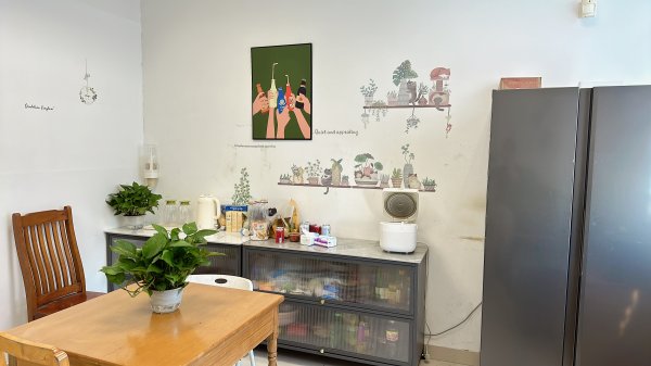 封浜支局位于嘉定區(qū)翔封路38號,與營業(yè)部同址化管理,支局目前共有工會會員30人,工間休息室面積約為12㎡。由于支局整體于去年剛完成裝修翻新,故工間休息室的硬件、墻面及地板已達到較好的效果,此次不再計劃改善。改造前休息室只是作為一個工間休息的空間,設備都很簡單,僅有3把靠背椅、1個電熱水壺、2個保溫壺。此次工間休息室建設改善增添了微波爐、小冰箱、躺椅、空調扇、折疊餐桌、飲水機等必要設施設備,還配備了電視機、橢圓機、小沙發(fā)、空氣炸鍋等個性化設備。由于封浜支局的工間休息室空間較小,故在布置上無法大做文章,配備了基礎的物品后,結合基層員工心聲,將休息室內(nèi)陳舊的收納柜、桌椅等,全部煥然一新。墻面裝飾方面為讓休息室更有溫馨和團體氛圍感,部門工會布置了小黑板,定期更新照片,展示員工風采。