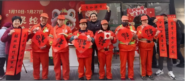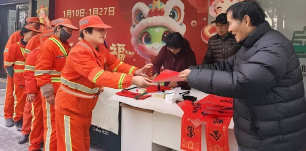 活動(dòng)現(xiàn)場,特別邀約了三位杭郵書畫協(xié)會(huì)的資深書法大師,他們滿懷著熱情,鋪開了一張張充滿喜慶的紅色宣紙,蘸點(diǎn)濃墨、恣意揮毫,親身為現(xiàn)場的戶外工作者們書寫出一幅幅充滿著吉祥寓意、濃厚年味的對(duì)聯(lián)與“?!弊帧B涔P之處,遒勁有力,每一筆、每一劃都蘊(yùn)含著我們郵政人對(duì)戶外勞動(dòng)者們辛勤付出的認(rèn)可與尊重。而我們的雙菱路“愛心驛家”站點(diǎn)也因此呈現(xiàn)出了一份從未有過的文化光景與藝術(shù)氛圍,現(xiàn)場的戶外工作者們臉上都洋溢著贊賞與感激,紛紛表示郵政的這項(xiàng)活動(dòng)非常有意義,為他們的心靈上帶來了極大的鼓舞與溫暖。