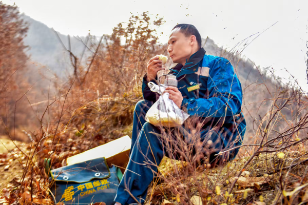 長年累月奔波在深山郵路上,陪伴張磊的只有郵車和山風(fēng)。到了冬天,山上氣溫低,下完雪很久才能化。走在山中,寒風(fēng)陰冷刺骨,他常身上冒著汗,鼻子、耳朵卻凍得發(fā)紫,兩條褲腿上都結(jié)著冰。平時,他很少能安安心心吃頓午飯,經(jīng)常是早上出班時,郵包里裝點(diǎn)包子或者饅頭、咸菜,中午餓了,白開水就包子就是一頓午餐。