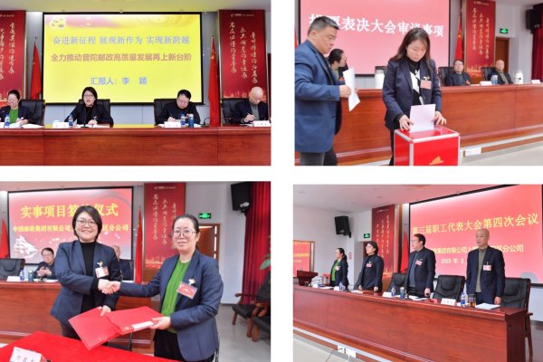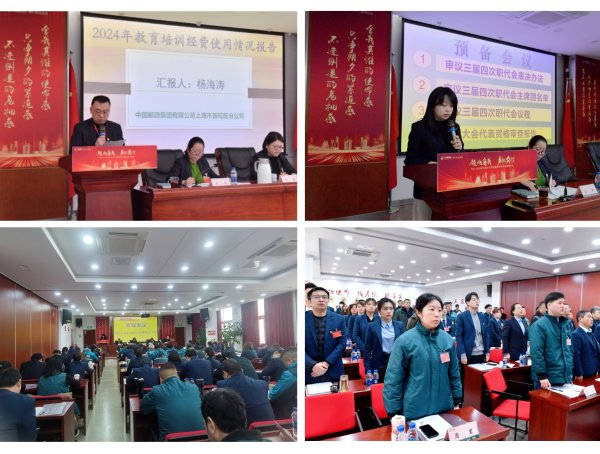 2025年2月20日,中國郵政集團有限公司上海市普陀區(qū)分公司第三屆職工代表大會第四次會議隆重召開。本次大會深入學(xué)習(xí)貫徹黨的二十大、二十屆二中三中全會精神,全面落實市分公司2025年工作會議暨三屆三次職代會要求,總結(jié)2024年全年工作、分析形勢,部署2025年重點任務(wù)。拼搏競進、勇毅前行,扎實推進各項改革發(fā)展工作,推動重點業(yè)務(wù)提質(zhì)增效、提升管理服務(wù)水平。認真落實企業(yè)民主管理制度,充分發(fā)揮職工代表參政議政作用,正確履行職工代表職責(zé),共同努力完成本次大會各項任務(wù),為推動普陀郵政2025年各項工作目標而奮勇前進。