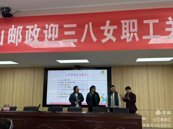 為慶祝2025年“三八”婦女節(jié),關(guān)愛女職工身心健康,3月7日上午,唐山市分公司工會舉辦了“伊路同行——女職工關(guān)愛大講堂”心理健康講座。來自市分公司、市寄遞事業(yè)部各單位的130余名女職工參加,本次活動特邀唐山市心理咨詢師協(xié)會會長、國家二級心理咨詢師于素靜老師,為女職工們帶來了一場主題為“壓力管理與健康促進(jìn)”的精彩講座。