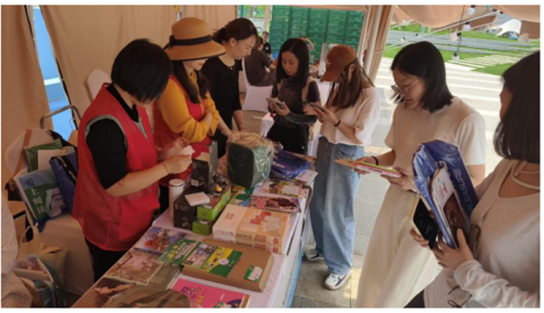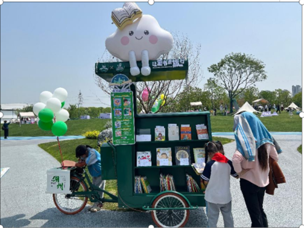 活動現(xiàn)場,小梅港體育公園被裝扮得書香四溢,處處洋溢著閱讀的氛圍。湖州市公共圖書館精心策劃了一系列豐富多彩的活動議程,吸引了眾多市民駐足參與。而在這場文化盛宴中,湖州市郵政公司在書潮市集區(qū)設立特色攤位,不僅為閱讀者提供了涵蓋文學、社科、少兒讀物等多品類書籍,并推出郵政“童書漂流車”創(chuàng)新服務,鼓勵孩子們交換圖書,傳遞知識與快樂。成為現(xiàn)場一道亮麗的打卡風景,吸引眾多閱讀愛好者駐足參與。