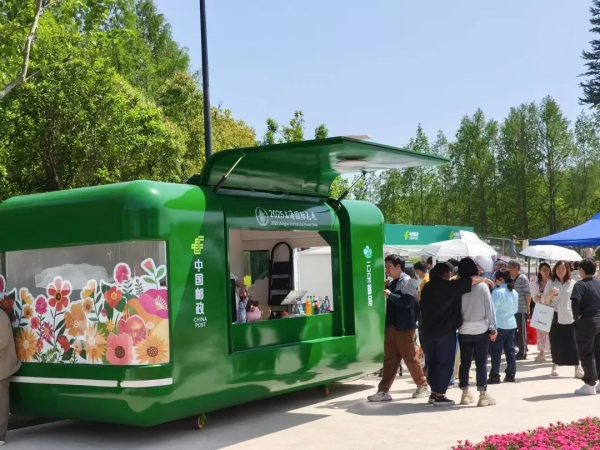 在錢(qián)家灘路(前灘公園巷段)限時(shí)步行街舉辦的前灘花集和早春非遺生活節(jié)期間,浦東郵政在新自然主義花廊旁特別設(shè)立了花展快閃郵局。為了慶祝此次花展,浦東郵政推出了限定版花展定制明信片和彩色郵資機(jī)戳,為本次花展增添了一份特別的記憶點(diǎn)。這一獨(dú)特的郵資機(jī)戳不僅是對(duì)本屆花展的美好祝福,也為廣大集郵愛(ài)好者提供了一次難得的收集機(jī)會(huì)?;ㄕ箍扉W郵局特制了個(gè)性化郵差寶貝郵筒,造型獨(dú)特,充滿(mǎn)趣味,與現(xiàn)場(chǎng)的自助冰箱貼打印機(jī)、有聲明信片打印機(jī)一同成為活動(dòng)現(xiàn)場(chǎng)的一大亮點(diǎn),游客紛紛駐足打卡??扉W郵局引入云朵主題郵局的云南咖啡,進(jìn)行現(xiàn)場(chǎng)制作,讓來(lái)往行人駐足品味的同時(shí),感受到來(lái)自遠(yuǎn)方的溫暖問(wèn)候。現(xiàn)場(chǎng)還提供了豐富的明信片系列和郵政文創(chuàng)產(chǎn)品。