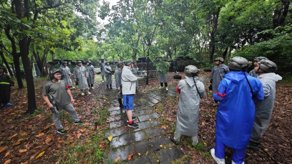 本次活動(dòng)的地點(diǎn)為叢林地貌,參與者可結(jié)合地勢(shì),掩體,通道,進(jìn)行紅藍(lán)攻防對(duì)抗。當(dāng)天雖然大雨傾盆,但無(wú)法澆滅員工們高漲的熱情。大家在樹(shù)林中來(lái)回穿梭,交替行進(jìn),或嚴(yán)正以待,或沖鋒陷陣,儼然一幅史詩(shī)戰(zhàn)爭(zhēng)的畫(huà)面。