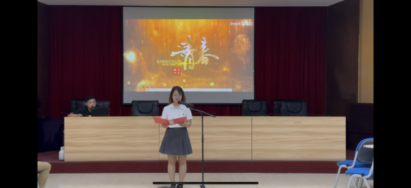 比賽現(xiàn)場,7個精心編排的節(jié)目依次登場,每一個節(jié)目都凝聚著選手們的心血。選手們早早便來到后臺,反復(fù)熟悉稿件、調(diào)整情緒。有的選手對著鏡子練習(xí)眼神與手勢,力求在舞臺上展現(xiàn)最完美的狀態(tài);有的選手則與搭檔輕聲交流,打磨配合的默契。正式表演時,參賽選手們以激昂的文字、鏗鏘的語調(diào),將一篇篇經(jīng)典作品演繹得淋漓盡致。