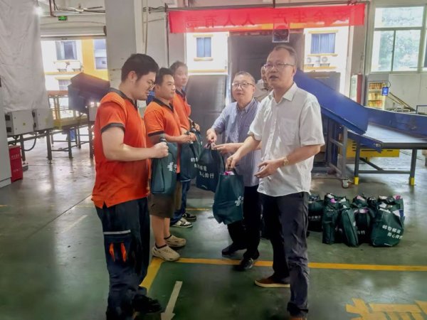 7月15日,杭州市分公司紀(jì)委書記、副總經(jīng)理陳法華帶隊前往余杭倉前攬投部,為奮戰(zhàn)在高溫一線的快遞員工送去組織的關(guān)懷和防暑降溫物資。