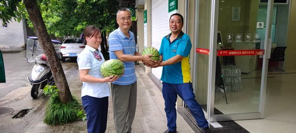 為確?;顒?dòng)覆蓋到每一位高溫作業(yè)人員,南川郵政領(lǐng)導(dǎo)班子分三隊(duì)奔赴一線,為高溫酷暑下堅(jiān)守崗位的一線員工送去西瓜、礦泉水等防暑降溫物品。同時(shí),南川郵政工會(huì)還特別關(guān)注戶外勞動(dòng)者的需求,為“郵愛驛站”送去西瓜和礦泉水,確保戶外勞動(dòng)者在驛站能夠清涼度夏。