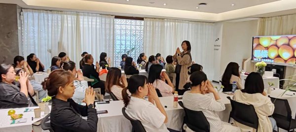 活動伊始,芳香療愈師老師向大家介紹了精油的來源與萃取工藝,讓職工親身體驗了野橘、薄荷兩種香型對人情緒的影響和放松身心的作用,讓職工在嗅覺與呼吸的調節(jié)中對精油的療愈功效有了全新認識。在隨后的互助頭療、手療體驗活動中,參與活動的職工們兩人一組,在老師的帶領下學習頭療按摩、手療按摩的放松技巧,讓大家在相互按摩的過程中通過指尖傳遞溫暖,感受關懷與信任,釋放工作累積的緊張與疲勞。