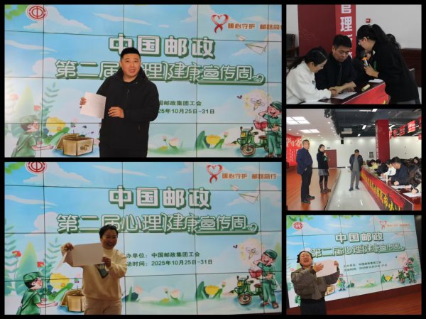 為落實(shí)“心理健康宣傳周”工作部署,進(jìn)一步加強(qiáng)郵政職工心理健康服務(wù)體系建設(shè),切實(shí)維護(hù)職工身心健康權(quán)益,營造“暖心守護(hù),郵路同行”的人文關(guān)懷氛圍,依托“心理關(guān)愛陽光使者”此次集團(tuán)培訓(xùn)的成果,做為中國郵政集團(tuán)工會(huì)心理關(guān)愛陽光使者的中的一員,在10月27日,遼寧省阜新郵政工會(huì)精心策劃的“暖心守護(hù)·郵我同行”為主題的心理輔導(dǎo)活動(dòng),本次心理健康宣傳活動(dòng)的順利開展借助了省工會(huì)提供的活動(dòng)主視覺設(shè)計(jì)、宣傳海報(bào)、以及下發(fā)的“健康加油包”等物品。并召集了基層工會(huì)工作者共同參與其中,把心理健康宣傳工作的力量擴(kuò)大,范圍擴(kuò)大。讓基層工會(huì)工作者把學(xué)習(xí)到的心理健康知識(shí)帶到職工的身邊去,在實(shí)際工作中做到及時(shí)的為職工心理疏導(dǎo)減壓。