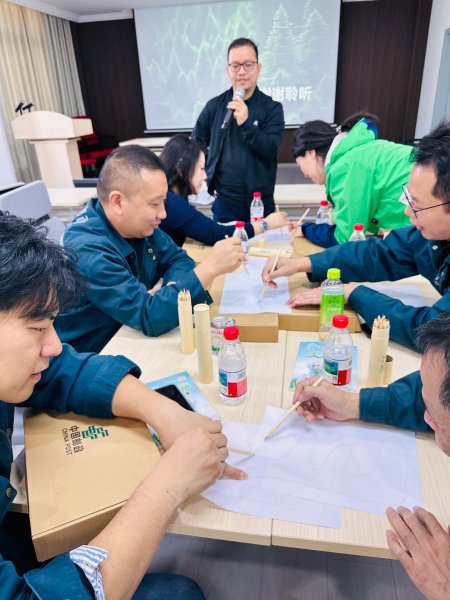 在此環(huán)節(jié),管文亮指導員工以兩人一組開啟創(chuàng)意挑戰(zhàn)。簡單的曲線被賦予無限可能。協作過程中,員工們相互配合,默契完成作品。分享環(huán)節(jié)更是笑聲不斷,創(chuàng)意想法的碰撞不僅激發(fā)了大家的想象力與創(chuàng)造力,更在輕松互動中拉近了同事間的距離,消融了日常工作中的疏離感,讓團隊氛圍愈發(fā)融洽。