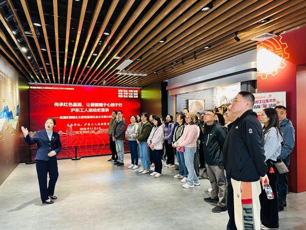 上午,在平?jīng)雎?500號(hào)滬東工人運(yùn)動(dòng)展示館,工會(huì)干部們沿著“歷史長河墻”緩步前行,從1919年楊樹浦紗廠工人罷工的黑白照片,到1927年第三次武裝起義留下的“人壽里”石匾,再到五卅運(yùn)動(dòng)中滬東工人高舉橫幅的復(fù)原場(chǎng)景,一段段血與火的工運(yùn)史詩讓大家駐足凝視,紅色記憶變得可觸可感。面對(duì)“時(shí)代楷?!闭箙^(qū)充分激發(fā)了大家向“咱們工人有力量”的奮斗基因致敬,精神上再次補(bǔ)鈣。