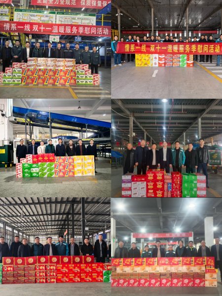 在“雙十一”旺季生產(chǎn)之際,商丘市分公司總經(jīng)理和市公司黨委領(lǐng)導(dǎo)一行,深入全市各郵件處理中心開展旺季慰問活動,為堅(jiān)守在一線的員工送去方便面、火腿腸、面包、綠茶等慰問品,并傳達(dá)了市公司黨委對一線員工的關(guān)心關(guān)愛。