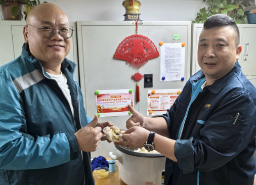 作為黨員、退伍軍人,曾丙妥在部隊(duì)習(xí)得的烹飪技能,如今成了服務(wù)同事的“暖心法寶”。每年旺季,他都主動(dòng)報(bào)名參與工會(huì)慰問(wèn)活動(dòng),親手為一線員工送上熱湯熱面?!霸卩]政工作21年,我親眼見(jiàn)證工會(huì)對(duì)員工的關(guān)愛(ài)一年比一年細(xì)致。這份溫暖,值得我們用實(shí)干去回報(bào)!”