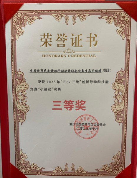 10月29日,重慶市國防郵電工會2025年“勞動創(chuàng)造幸福 技能成就夢想”職工“五小 三絕”創(chuàng)新勞動和技能競賽總結(jié)表彰暨成果展示活動召開,江北郵政工會申報(bào)的“觀音橋市民夜校雙輪驅(qū)動的社會效益生態(tài)圈構(gòu)建”項(xiàng)目榮獲“小建議”類三等獎(jiǎng)。
