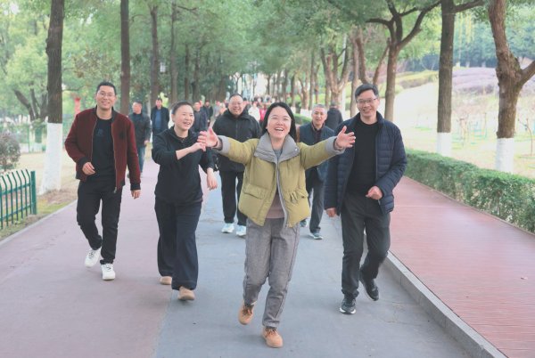 健步路線沿袁山公園主環(huán)線展開,全程3公里。冬日的公園雖寒意猶存,但郵政員工熱情高漲,步履鏗鏘。一路上,大家或三五成群交流暢談,或你追我趕相互鼓勵(lì),郵政人的蓬勃朝氣與公園的盎然生機(jī)相映成趣。