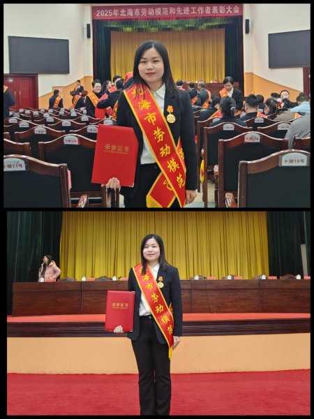 會上,羅英曉同志被授予2025年“北海市勞動模范”榮譽(yù)稱號,市委、市政府領(lǐng)導(dǎo)為其頒發(fā)榮譽(yù)證書和獎牌,對其長期以來扎根郵政一線、深耕郵政普惠金融服務(wù)、助力地方發(fā)展的突出業(yè)績給予充分肯定。