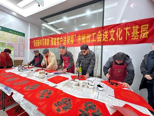 活動(dòng)特邀麗水市書法研究會(huì)的藝術(shù)大師親臨現(xiàn)場(chǎng),書案前紅紙鋪展、墨香氤氳,大師們揮毫潑墨、筆走龍蛇,一幅幅寓意吉祥的春聯(lián)與遒勁有力的“?!弊周S然紙上?!帮L(fēng)調(diào)雨順家業(yè)興,國(guó)泰民安財(cái)運(yùn)旺”等定制春聯(lián),既飽含對(duì)新年的美好期許,也寄托著郵政對(duì)客戶的真摯祝福?,F(xiàn)場(chǎng)客戶踴躍參與,不少客戶手持剛出爐的春聯(lián)與福字,臉上洋溢著喜悅與感動(dòng)。