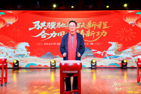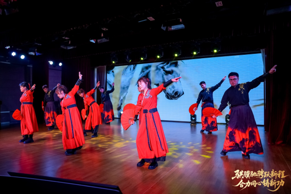 匯演伊始,區(qū)分公司總經(jīng)理、黨委書記手持幸運鼓槌,沉穩(wěn)有力地敲響象征吉祥與奮進的大鼓。鏗鏘鼓點,寓意浦東郵政新歲將如駿馬奔騰、勇毅前行;陣陣鼓聲,傳遞著領(lǐng)導(dǎo)班子對全體員工的新春美好祝福,更凝聚起全體浦郵人 “合力同心鑄新功”的堅定信念與奮進力量,拉開了文藝匯演的精彩序幕。