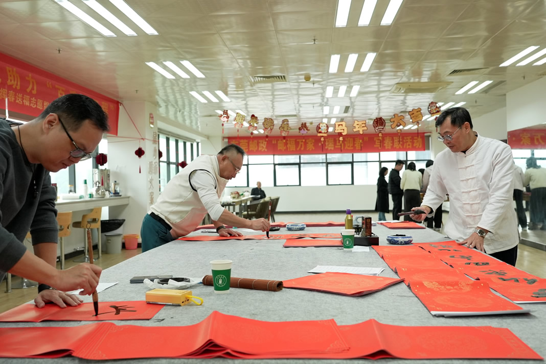 茶山、城區(qū)、石碣、石龍等各分會(huì)也同步開展寫春聯(lián)、送福字迎新春活動(dòng),紛紛邀請(qǐng)書法功底扎實(shí)的老師現(xiàn)場(chǎng)創(chuàng)作,書寫馬年祝福、傳遞郵政溫情,活動(dòng)氛圍熱烈,深受廣大職工喜愛與好評(píng)。
