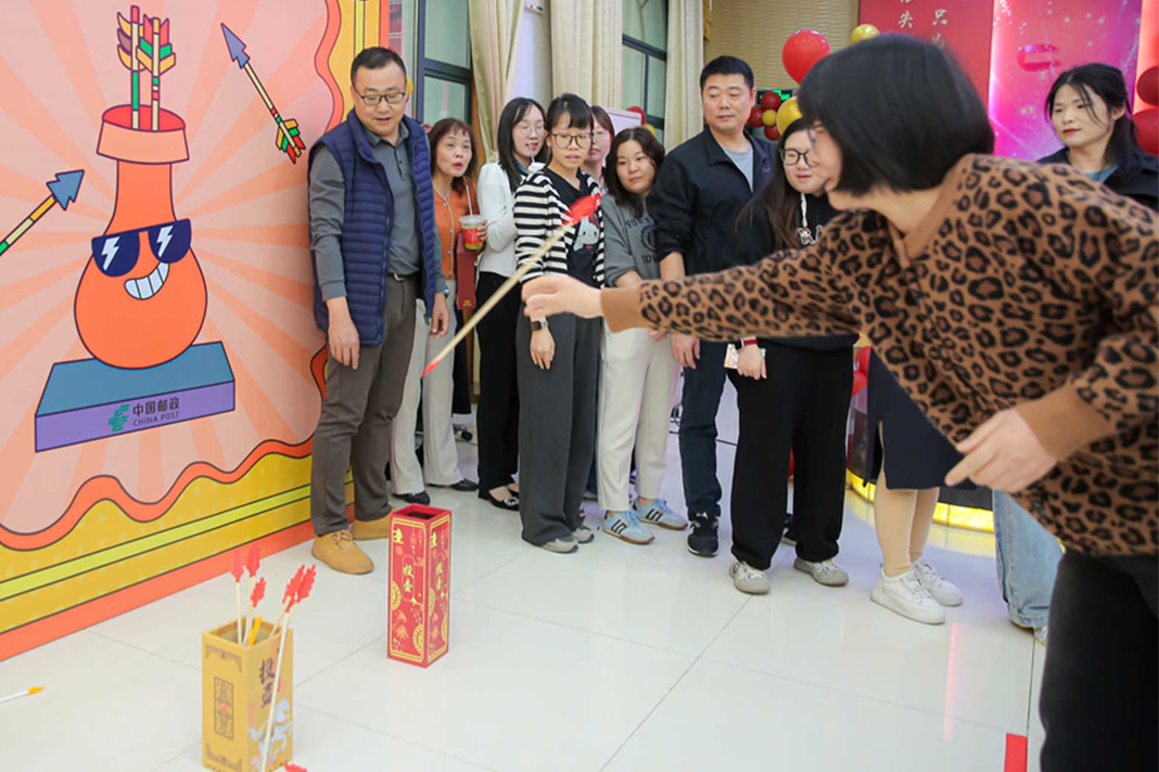 這次活動精心設置多項員工喜聞樂見的趣味游戲?!翱鞓肪艑m格”挑戰(zhàn)精準度與腕力;“駟馬難追”考驗策略與默契;經(jīng)典投壺游戲則讓員工們在引弓投矢間,親身感受古人的禮儀雅趣與傳統(tǒng)民俗的魅力。每個游戲點位前都排起了長隊,大家全神貫注、各顯身手,加油聲、喝彩聲此起彼伏,歡聲笑語彌漫整個會場,員工們在輕松互動中放松了身心,也拉近了彼此的距離。