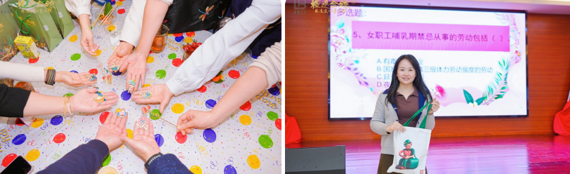 活動現(xiàn)場亮點紛呈、暖意十足。特邀市婦聯(lián)創(chuàng)業(yè)導師、禮遇金鑲品牌創(chuàng)始人黃學超老師,現(xiàn)場指導女職工開展掐絲琺瑯胸針手工制作,讓大家在指尖靈動間感受非遺技藝的匠心魅力,在沉浸式體驗中豐富精神文化生活、陶冶情操、舒緩工作壓力。同時,圍繞婦女權益保護、女職工勞動保護、企業(yè)形勢任務及企業(yè)文化等內容開展趣味有獎知識問答,氛圍熱烈活躍,既普及了相關知識,也進一步凝聚思想共識,增強女職工對企業(yè)發(fā)展的認同感與歸屬感?;顒舆€為獲獎先進個人、集體送上《陽光心態(tài)》書籍,為知識問答獲獎者送上郵政漫畫健康包,把暖心關懷精準送到女職工心坎上。