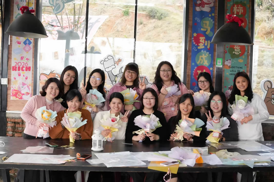 最受歡迎的當(dāng)屬DIY毛巾花環(huán)節(jié),女職工們興致盎然、踴躍參與。在專(zhuān)業(yè)老師的指導(dǎo)下,大家一步步折疊、卷曲、扎帶、塑形,一塊塊柔軟的毛巾,轉(zhuǎn)眼間變身成一朵朵精致可愛(ài)的小花。大家互相幫忙、交流技巧,看著親手制作的成品,每個(gè)人都成就感滿滿,臉上洋溢著燦爛的笑容。