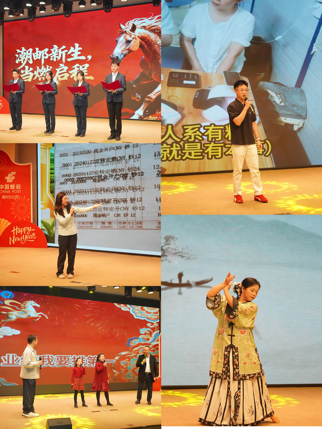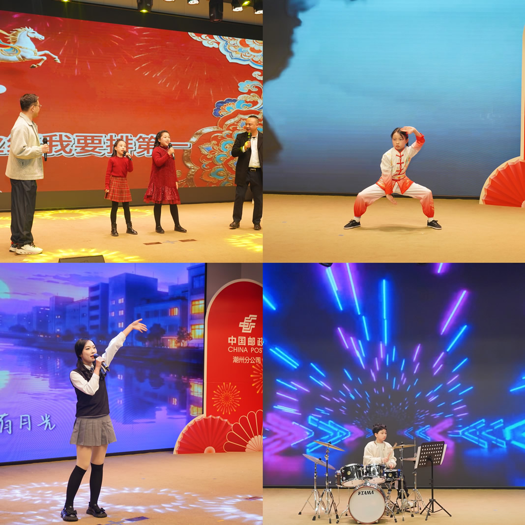 此外,琵琶演奏《上春山》、舞蹈《念琵琶》清雅優(yōu)美,盡顯傳統(tǒng)文化魅力;歌曲串燒《一路生花?奮進新征程》、小合唱《當》、朗誦《潮郵新生,當“燃”啟程》,以及獨唱《不要慌太陽落山有月光》《郵政系有料》等節(jié)目,全方位展現(xiàn)奮戰(zhàn)在經(jīng)營發(fā)展各條線的郵政員工,不分晝夜、暖心服務、辛勤奉獻的精神風貌,彰顯潮州郵政人踔厲奮發(fā)、銳意進取,以飽滿精神奔赴新征程的堅定決心。
