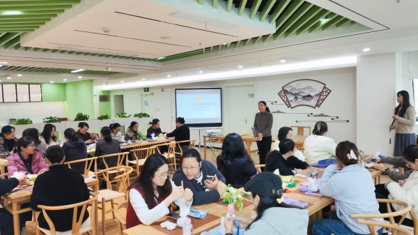 科普環(huán)節(jié)結(jié)束后,講師帶領(lǐng)全體女職工共同練習(xí)八段錦。大家跟著講師的口令,舒展肢體、調(diào)整呼吸,一招一式行云流水,在舒緩的動作中放松身心、增進(jìn)情誼,現(xiàn)場氛圍迅速活躍起來,為接下來的手作環(huán)節(jié)做好了充分準(zhǔn)備。