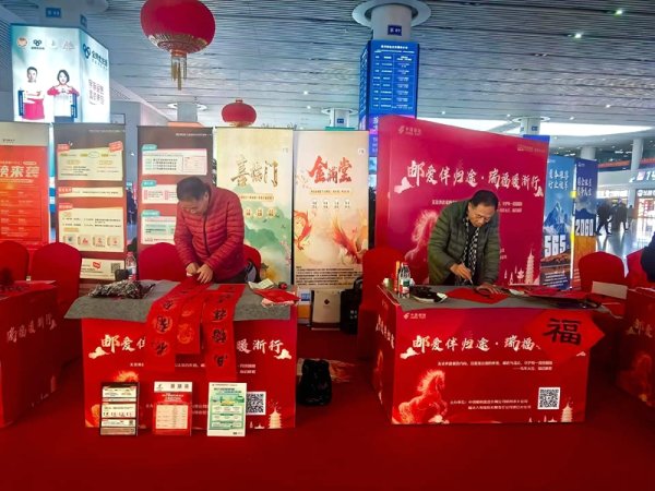 為助力郵政企業(yè)金融業(yè)務(wù)高質(zhì)量發(fā)展,為基層網(wǎng)點(diǎn)精準(zhǔn)引流,浙江省郵政工會(huì)日前組織開(kāi)展“郵愛(ài)伴歸途·瑞福暖浙行——杭州站點(diǎn)”新春公益活動(dòng),邀請(qǐng)省郵政書(shū)法美術(shù)家協(xié)會(huì)的書(shū)法家們現(xiàn)場(chǎng)揮毫,在杭州東站為返鄉(xiāng)返浙人員和過(guò)往旅客送上新春的問(wèn)候與郵政的暖心服務(wù),贏得旅客們紛紛點(diǎn)贊。