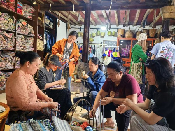 隨后,活動(dòng)組織職工開(kāi)展傣族織布非遺體驗(yàn)活動(dòng)。在傣族大媽的細(xì)致講解與教學(xué)下,女職工們親手挑選材料,將零散布料變廢為寶,拼接制作“裂織布”手機(jī)包。通過(guò)巧妙配色與匠心制作,一件件獨(dú)具民族特色的手作包包新鮮出爐。大家在動(dòng)手實(shí)踐中深化了“沒(méi)有無(wú)用的廢物,只有放錯(cuò)位置的原材料”的環(huán)保理念,也充分展現(xiàn)出郵政女職工心靈手巧、蘭心蕙質(zhì)的別樣風(fēng)采。