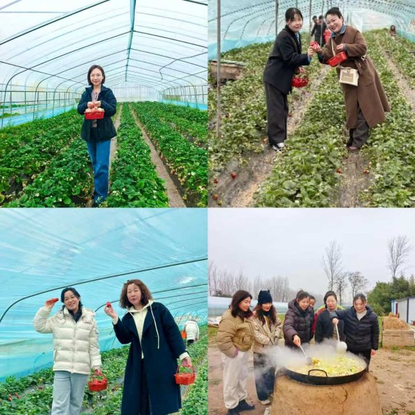 草莓采摘區(qū)內(nèi),女職工們提著小籃,穿行在綠葉掩映的田壟間,親手采擷春日里第一抹紅潤鮮甜的草莓。在農(nóng)家土灶區(qū)域,大家分工協(xié)作,燒火、洗菜、切菜,用最樸素的方式烹飪出地道的“大鍋燴菜”?;顒游猜?,大家圍坐分享熱氣騰騰的流心蜜薯,暢談勞動帶來的滿足與快樂。