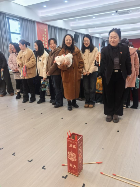 活動現(xiàn)場氣氛熱烈,女職工們踴躍參與投壺、套圈圈等項目,在輕松愉悅中放松身心、增進交流,充分展現(xiàn)了健康活潑、團結奮進的精神風貌?;顒訛閮?yōu)勝者準備了小獎品,為每位參與者送上鮮花,讓大家收獲快樂與溫暖。