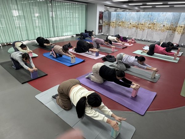 3月13日,瑜伽小組首次開課,職工們暫別忙碌,伴著舒緩音樂靜享療愈時(shí)光。在專業(yè)老師指導(dǎo)下,大家從冥想呼吸切入,開展肩頸拉伸、基礎(chǔ)體式練習(xí),老師逐一對(duì)動(dòng)作細(xì)節(jié)耐心糾正,眾人在一呼一吸間舒 展身心,有效緩解伏案工作的身體疲憊和職場壓力,實(shí)現(xiàn)身心雙重放松。