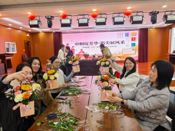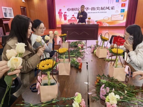 插花活動(dòng)如期開啟,現(xiàn)場(chǎng)花團(tuán)錦簇、生機(jī)盎然,各色鮮花錯(cuò)落擺放。在老師的指導(dǎo)下,大家修剪枝葉、搭配色彩,將春日的生機(jī)與美好融入花藝作品中,現(xiàn)場(chǎng)歡聲笑語不斷,定格下最美的巾幗笑顏。
