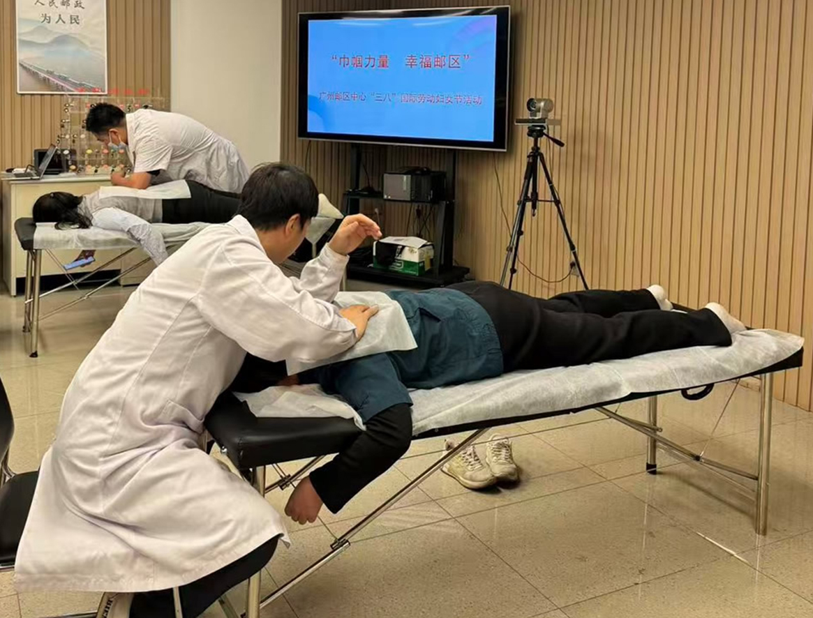 廣州郵區(qū)中心信息監(jiān)控班女工占比達75%,班組內(nèi)的客服女工們是保障信息暢通、服務(wù)群眾需求的重要力量。由于崗位特殊性,她們需長時間伏案工作、緊盯屏幕,是典型的“久坐族”。尤其是春節(jié)返工以來,隨著工單量激增,大家的工作負荷明顯加重,加班加點成為常態(tài),不少人出現(xiàn)肩頸酸痛、精神疲憊的狀況。為關(guān)愛女職工身心健康,郵區(qū)中心工會積極對接外部資源,特邀專業(yè)體檢機構(gòu)的兩名資深推拿師,為信息班全體女工提供一對一肩頸放松服務(wù)?;顒蝇F(xiàn)場,推拿師們憑借豐富的經(jīng)驗和嫻熟的手法,仔細為每位女職工進行穴位按壓與肌肉松解,并根據(jù)大家的身體狀況,耐心講解日常辦公中保護頸椎、緩解疲勞的小技巧。